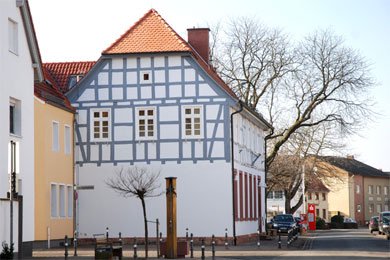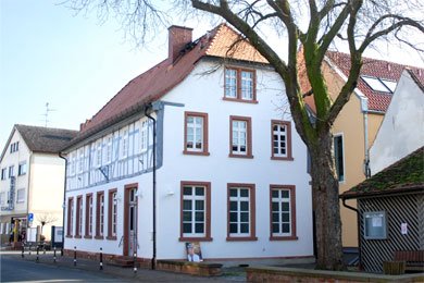 Das denkmalgeschützte Fachwerkgebäude in exponierter Lage im Ortskern von Astheim wird von Vereinen und der Musikschule genutzt.